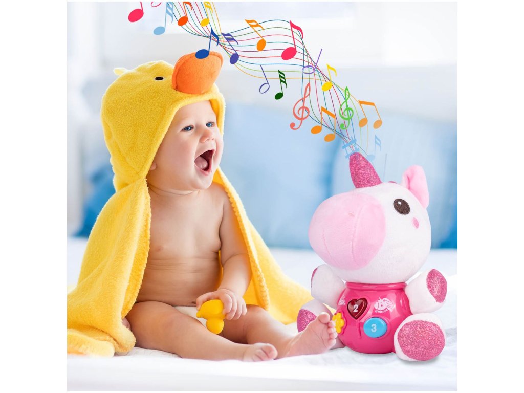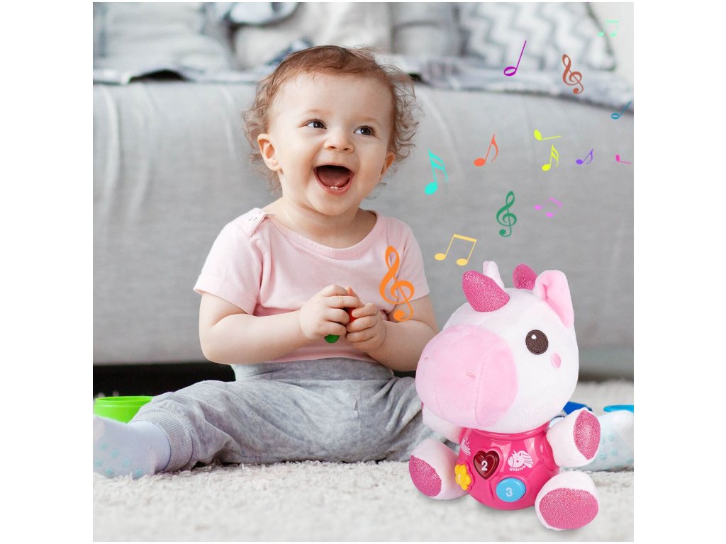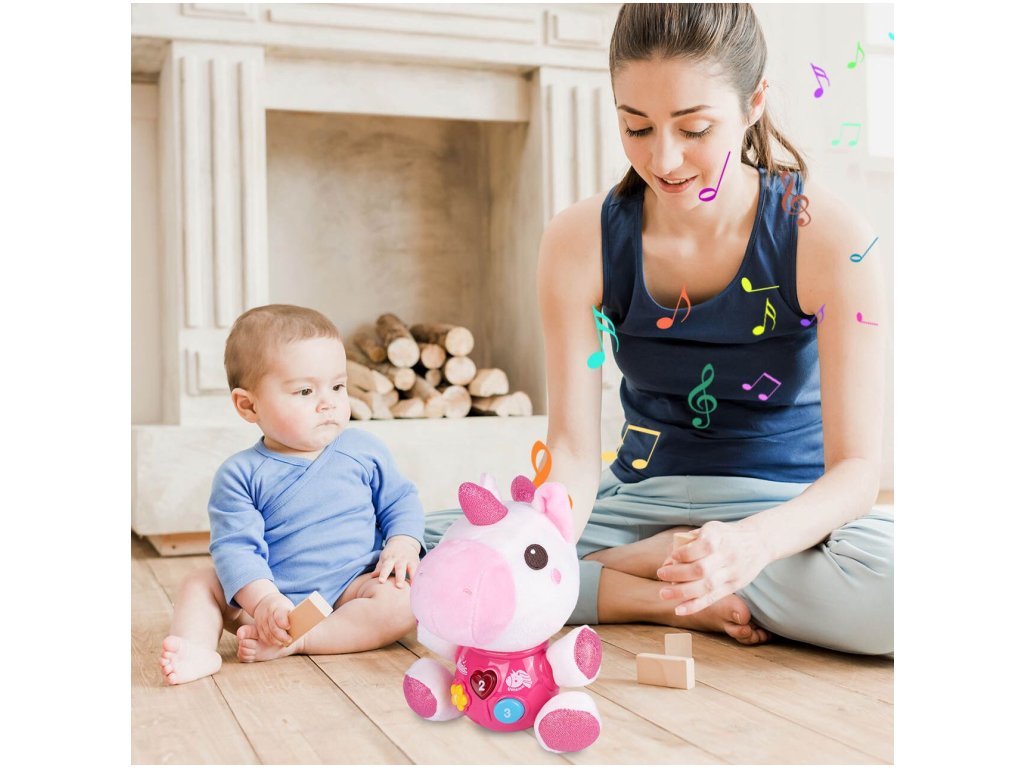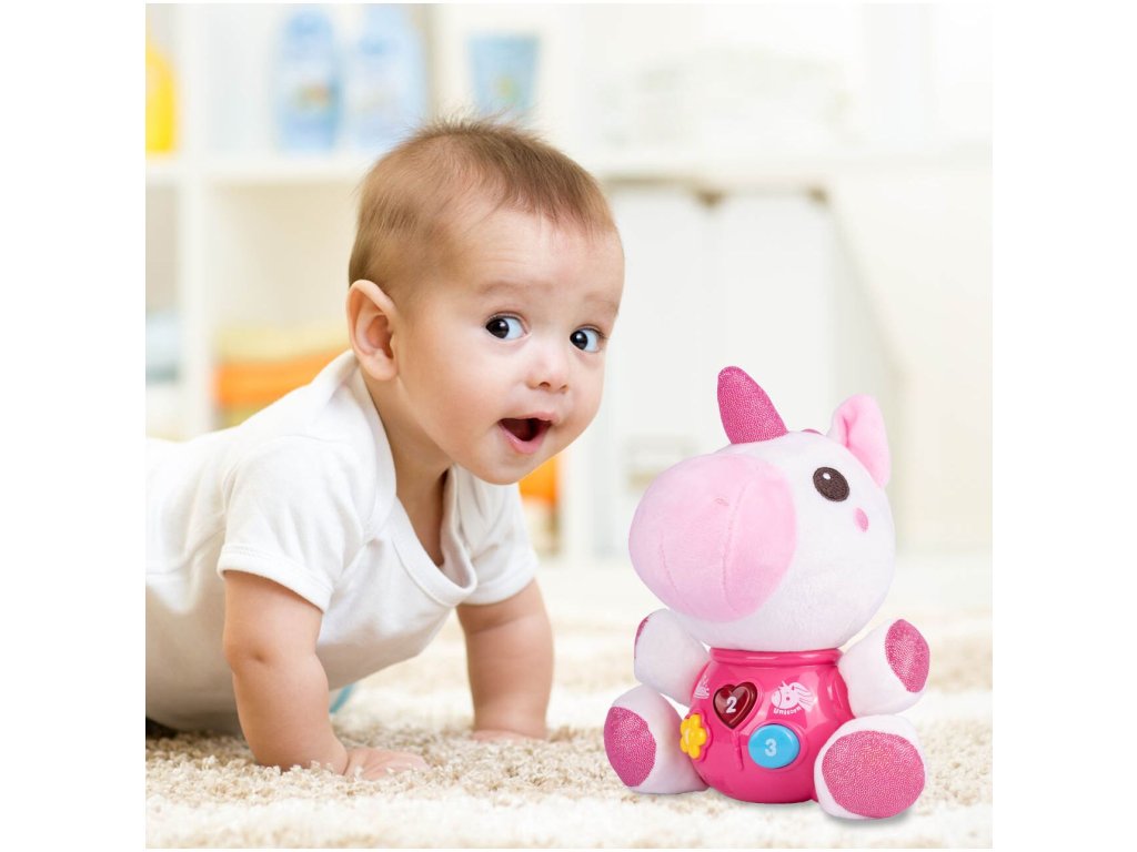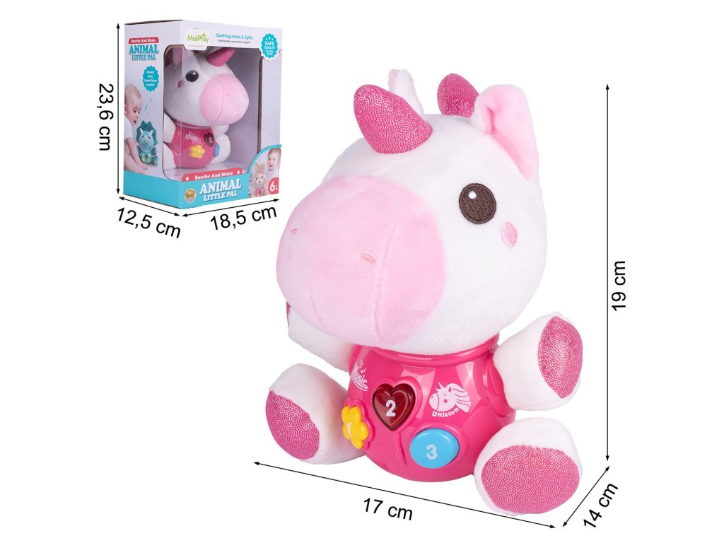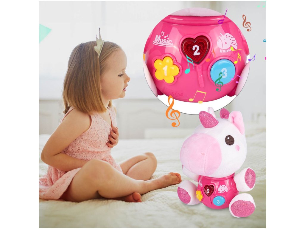 Interaktivní plyšový jednorožec Magic Unicorn je ideální hračkou nejmenší děti. Je vyroben z jemného na dotyk příjemného materiálu. Po zmáčkutí tlačítek se spustí, osvětlení, zvuky a melodie. Hračka je určena pro děti od 6 měsíců věku.