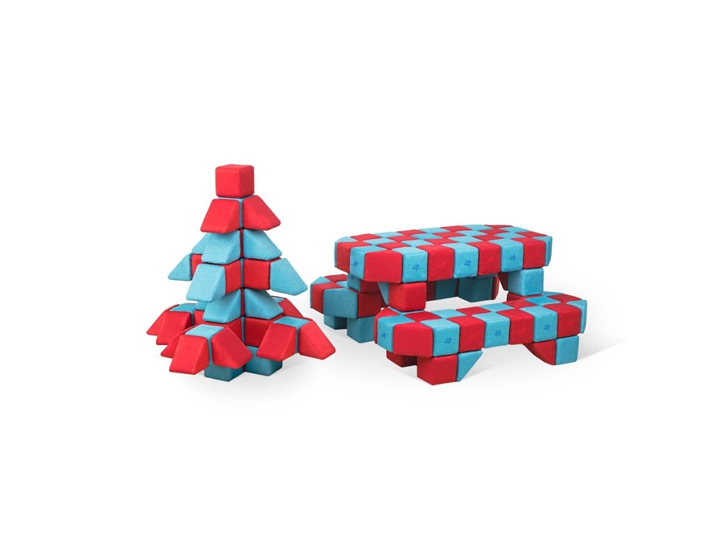 Každá kostka váží 150 g, což zajišťuje snadnou manipulaci i pro menší děti. Vnitřní pěna s vysokou hustotou je odolná vůči deformaci, takže si kostky po stlačení vždy zachovají svůj původní tvar. Povrch je vyroben z jemné, ale pevné textilie s pevnými švy, které zabraňují přístupu k magnetům. Stavebnice splňuje všechny bezpečnostní normy EN 71-1, EN 71-2 a EN 71-3, takže je vhodná i pro nejmenší děti. Kostky lze snadno čistit – stačí je vložit do pračky a vyprat při teplotě 30 °C.