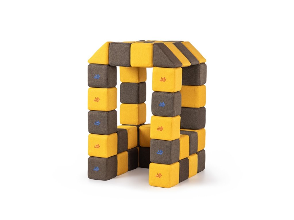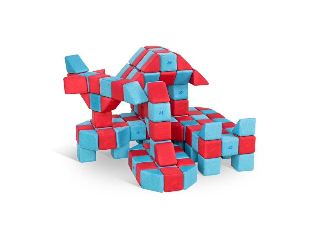 JollyHeap je jedinečná stavebnice z velkých měkkých kostek s bezpečně ukrytými magnety uvnitř.