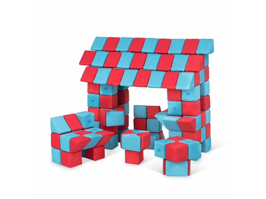 Díky nim se kostky snadno spojují a děti mohou vytvářet neomezené množství tvarů – od jednoduchých věží až po domečky, hrady, prolézačky či sedací nábytek.
