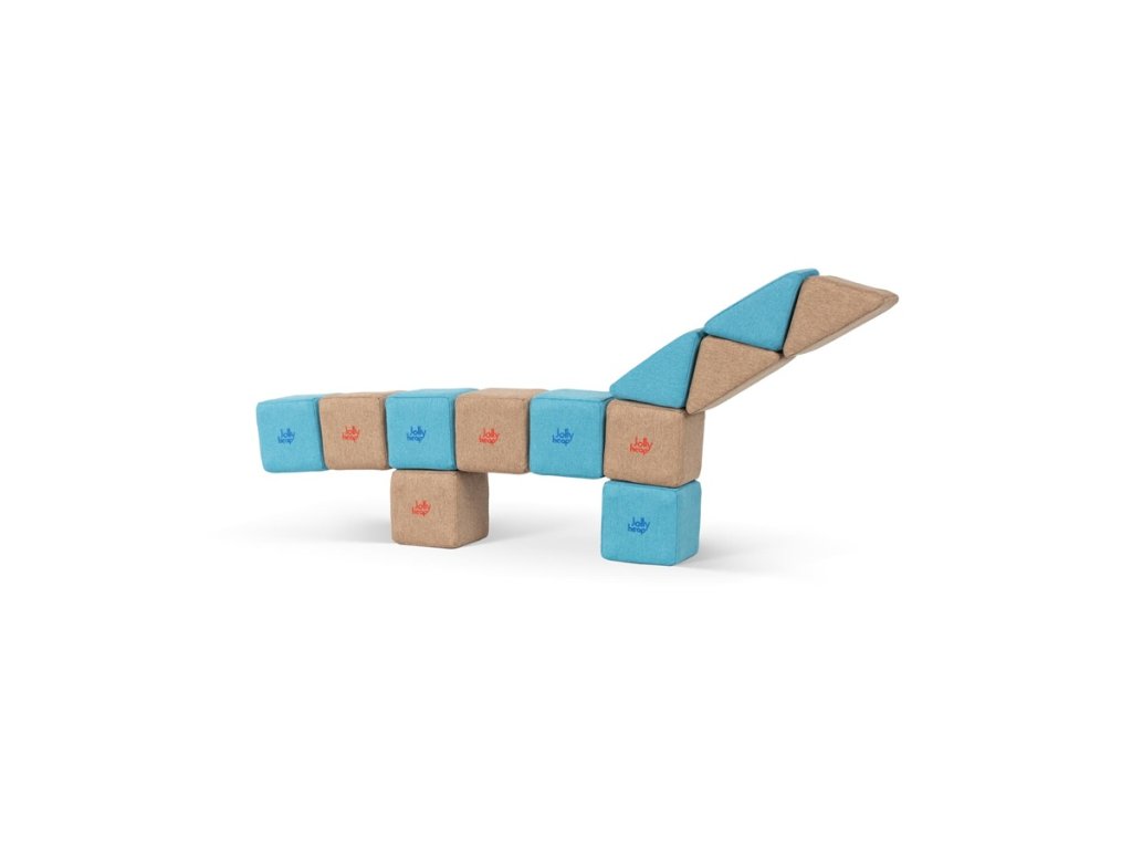 Díky nim se kostky snadno spojují a děti mohou vytvářet neomezené množství tvarů – od jednoduchých věží až po domečky, hrady, prolézačky či sedací nábytek.