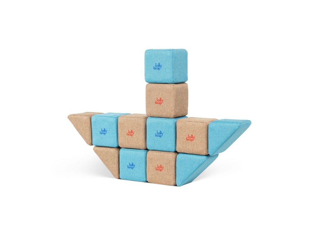 JollyHeap je jedinečná stavebnice z velkých měkkých kostek s bezpečně ukrytými magnety uvnitř.