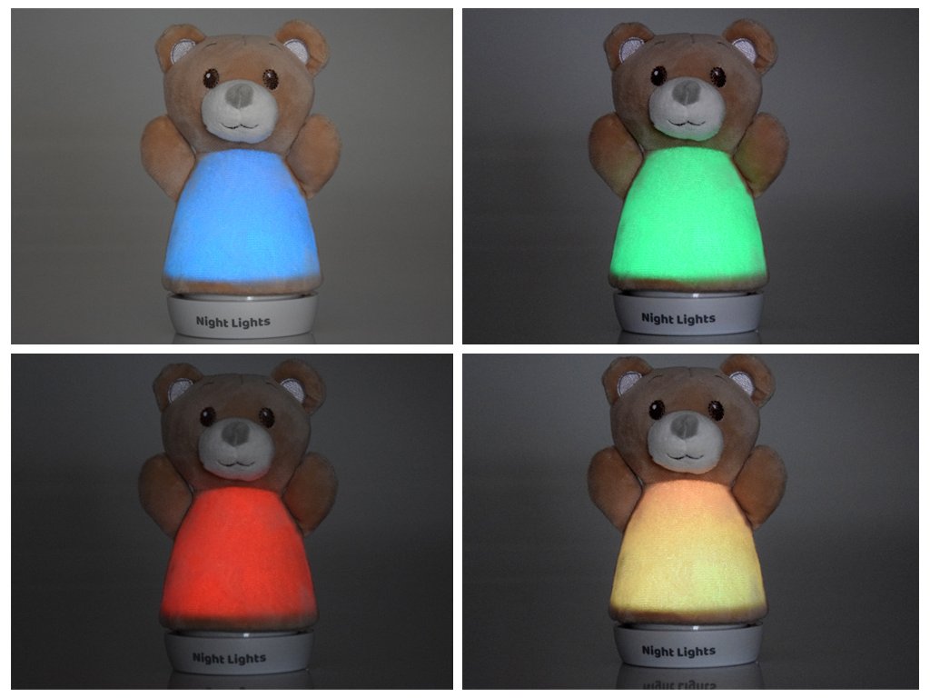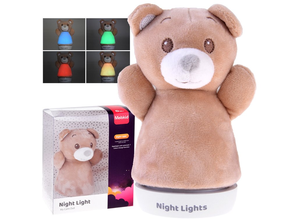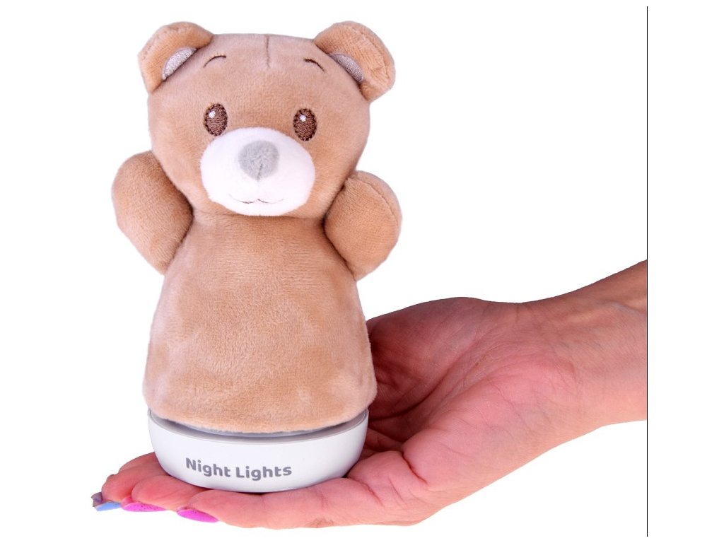 Plyšová noční lampička Medvídek je ideální hračkou pro ty nejmenší děti kdy jim pomůže snadno usnout. Je vyrobena z jemného na dotyk příjemného materiálu. Nahradí i funkci lampy, díky střídání barev bude perfektním pomocníkem při usínání Vašeho dítěte. Potah je snímatelný, lze ho využít jako usínáček.